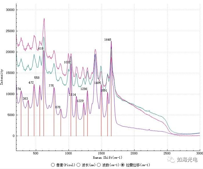 當光與生物組織相互作用時,發生反射、吸收、熒光、散射(彈性散射與非彈性散射)等光學效應和現象。當入射光子與分子發生非彈性碰撞時,光子與分子之間發生能量交換。不僅光子運動方向發生改變,同時光子轉移一部分能量給散射分子,轉變為分子振動或轉動能量,或者從散射分子吸收一部分能量,導致光子波長/頻率發生改變。拉曼頻移是表征物質分子振動、轉動能級特性的一個物理量,也是利用拉曼光譜進行物質分子結構分析的依據。
